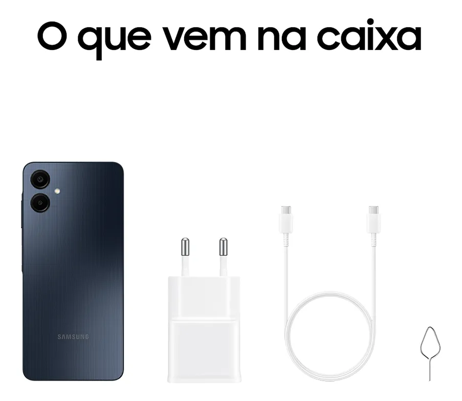 Celular Samsung Galaxy A06 com tela de 6.7″, 128GB, 4GB de RAM, Câmera Traseira de 50MP, Câmera Frontal de 8MP, Bateria de 5000mAh, Dual Chip, Android
